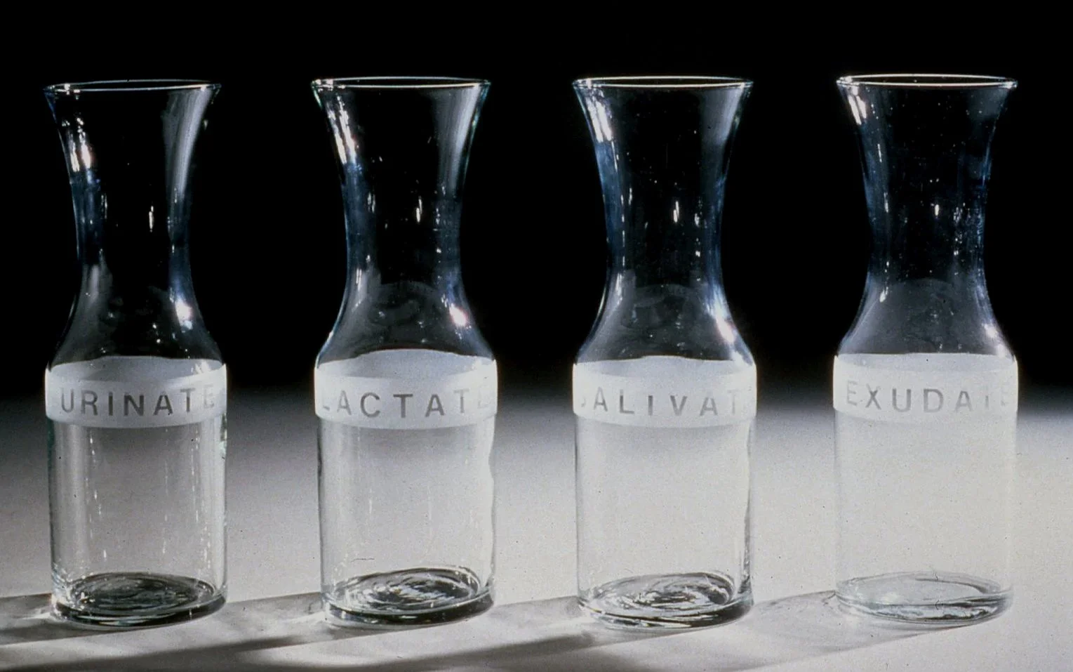 Slang Set (detail), 1991, sandblasted glassware, set of 4, edition of 10, each 9” x 5” x 10”.