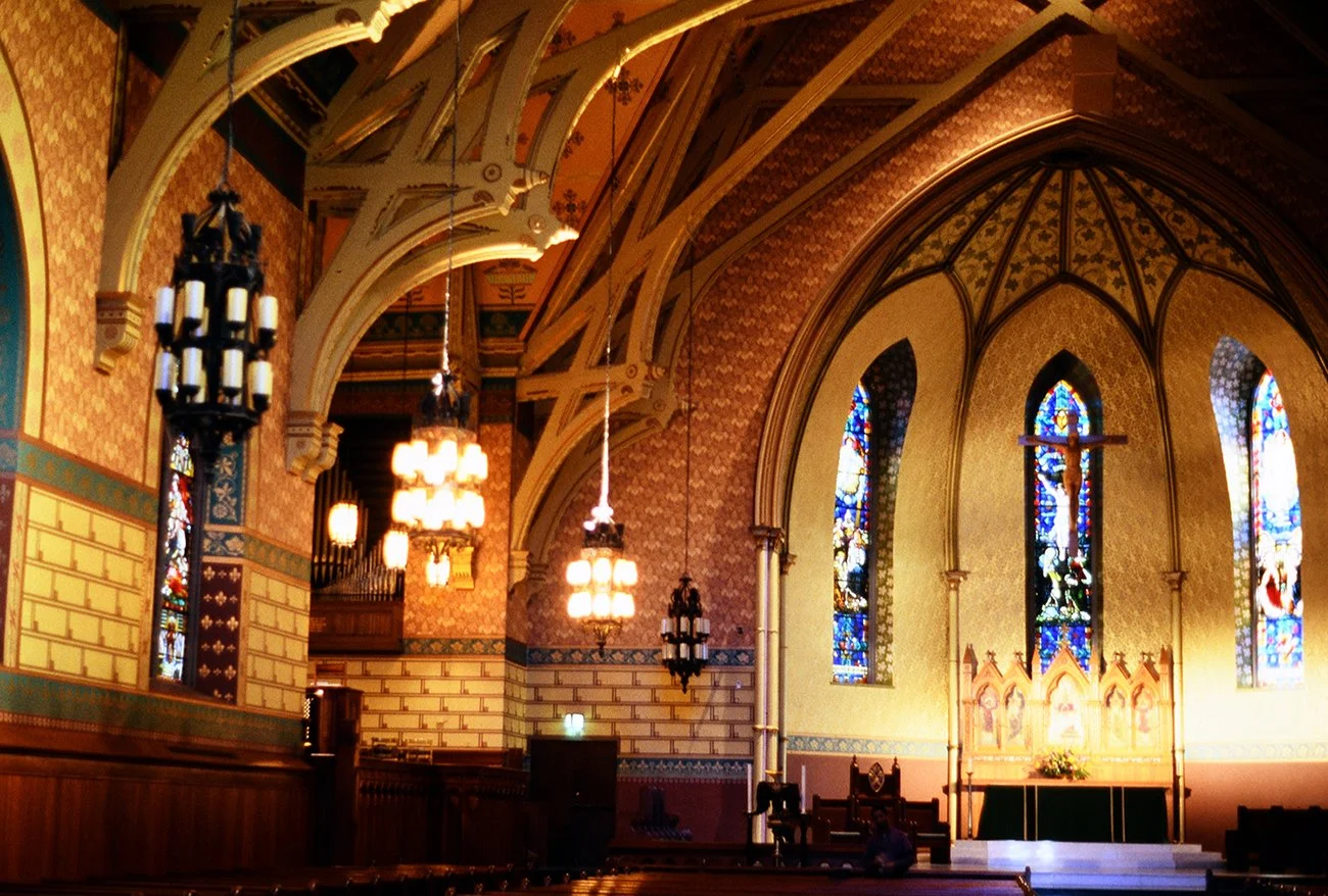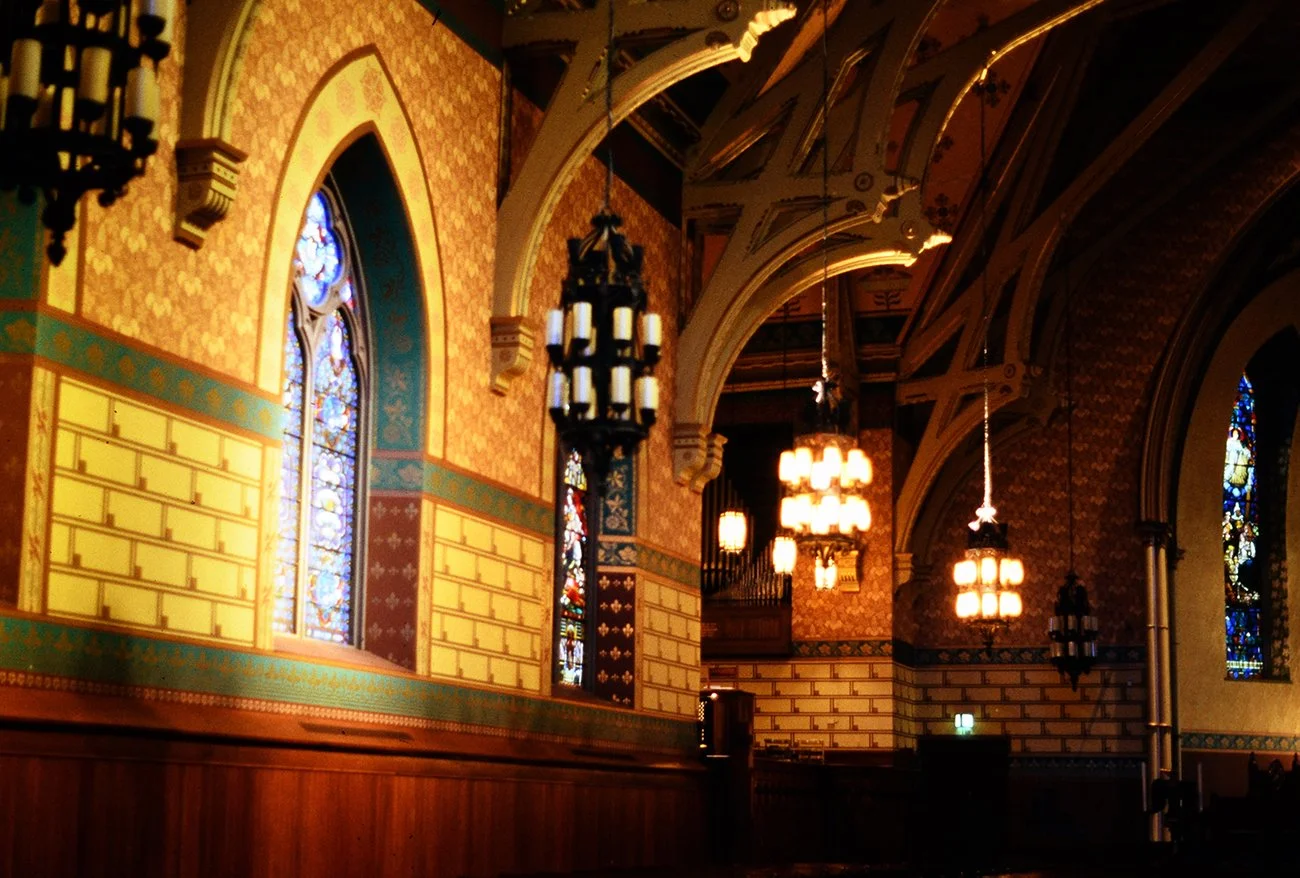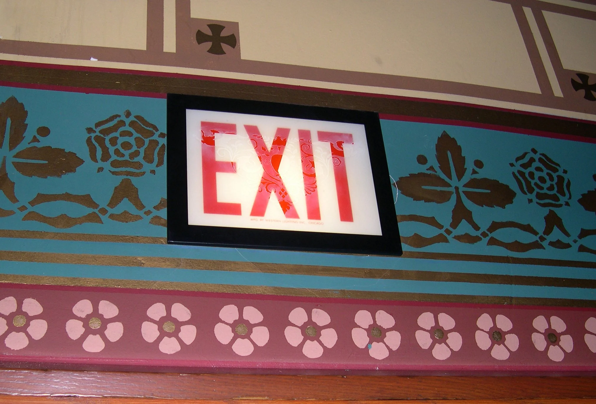 There is a long tradition of decorative art within the structure of ecclesiastical architecture. There are also, in the bureaucratically-laden society in which we live, an abundance of physical requirements that are applicable even to historic buildings such as St. James Cathedral. Thus we find a number of illuminated EXIT and other informational signs scattered throughout the interior of the Cathedral and its ancillary structures.